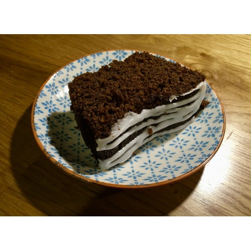 Ingredients: Butter, Soft Dark Brown Sugar, Treacle, Milk, White Wheat Flour, Free Range Eggs, Ginger, Cinnamon, Bicarbonate of Soda, Icing Sugar, Lemon Juice.