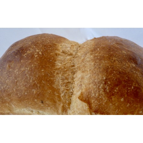 This bread is made according to a traditional English recipe. It is an enriched white bread made with good quality English white wheat flour, local whole milk in place of water, and small quantities of local honey & butter. It is somewhere between a conventional white bread and a brioche in texture, has a strong crumb & a glossy, dark crust, and makes very good sandwiches & truly excellent toast.